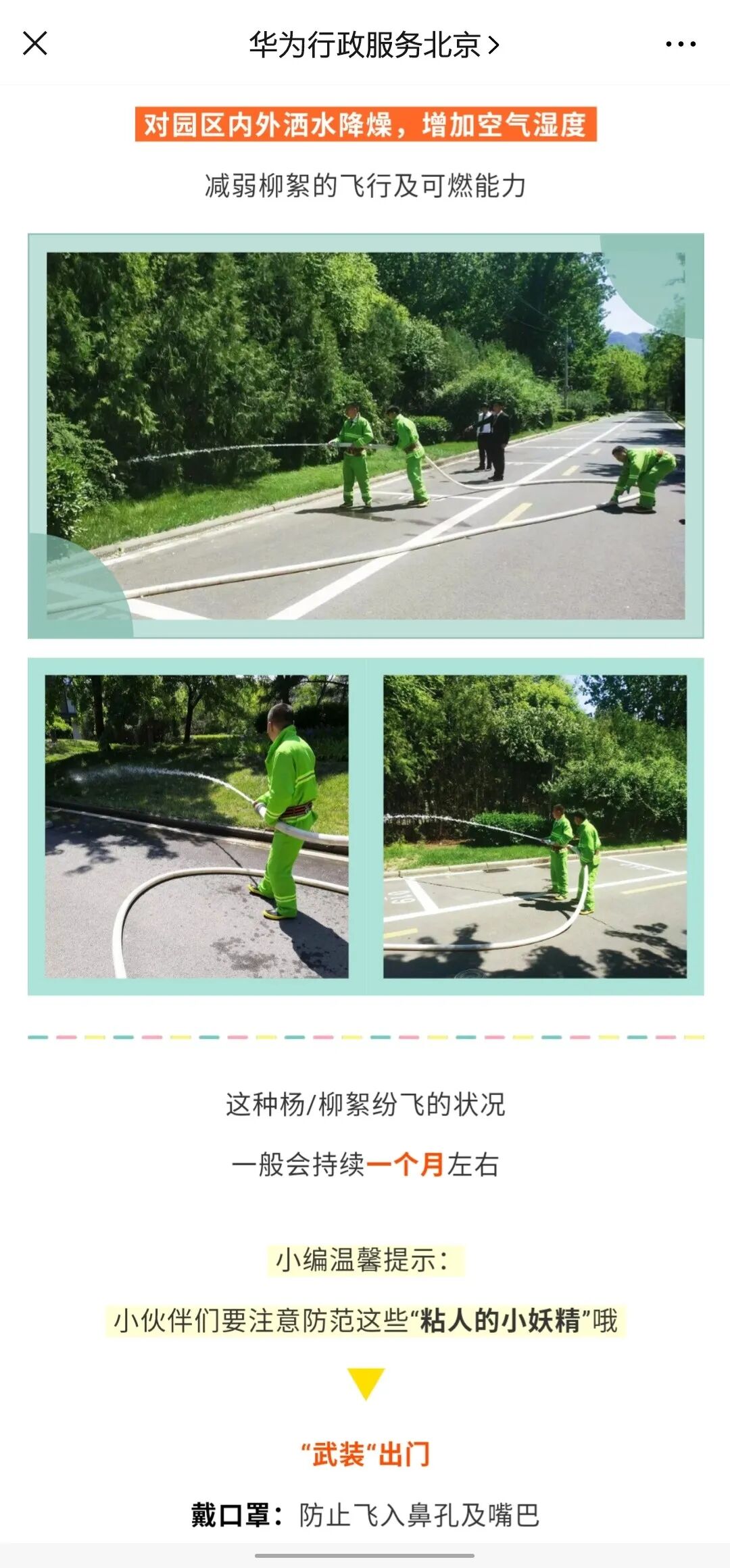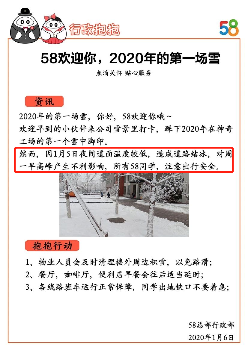 ③ 行政应对措施:可以向员工们介绍行政er面对特殊天气,采取了什么样的应对措施及安排。既可以体现出行政人关怀到位,也是有效抚慰员工的方法。