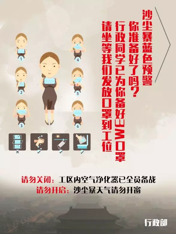 例如,去哪儿的行政er在沙尘暴通知中,告知员工行政部已备好3M口罩的消息。能大大降低员工们在沙尘暴天气中的焦虑及恐慌心理。